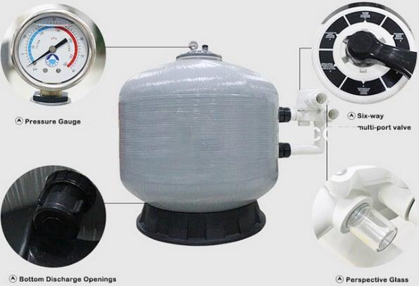 Thiết kế thông minh: nắp trong suốt dễ quan sát; van 6 chiều vận hành dễ dàng (lọc – rửa ngược – rửa xuôi – xả – tuần hoàn – đóng)